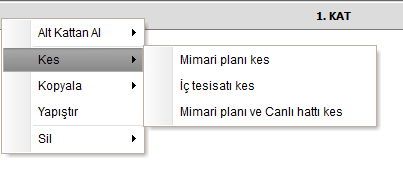 Kat içindeki mimari plan ve (veya) tesisatı kesip almak için;