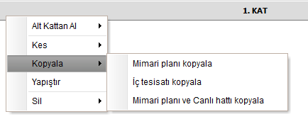 Kat içindeki mimari plan ve (veya) tesisatı kopyalamak için;