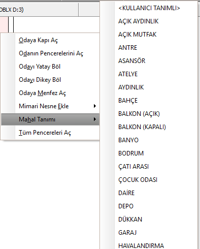 Mahal sağ tık menüsü:¶