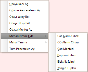 | Duvara Menfez Ekle | Seçili duvara menfez yerleştirir. |