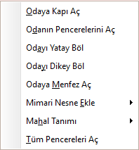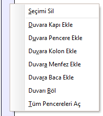 | Duvara Pencere Ekle | Seçili duvara pencere yerleştirir. |