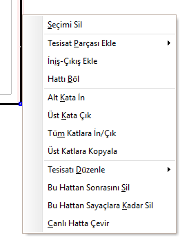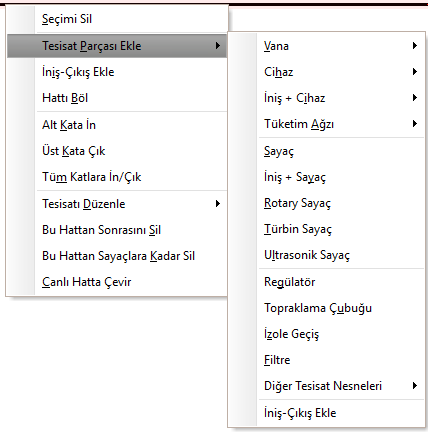 Tesisat sağ tık menüsü:¶