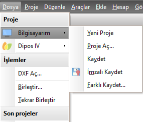 Bilgisayarım seçeneğinde, üzerinde çalışılan bilgisayardaki projeler söz konusudur. Dipos4 seçeneğinde ise projeler doğrudan Diposa yani bulut sisteme kaydedilmekte ya da oradan açılmaktadır.