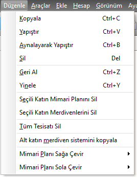 | Seçili Katın Merdivenlerini sil |