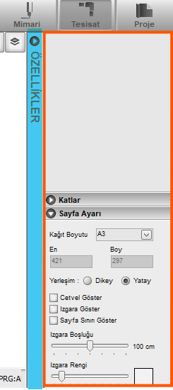 Ayrıca Ayarlar panelleri de özellikler panelinin alt kısmında yer almaktadır.
