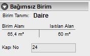 Birim Tanımı : İçindeki mahallerden birimin (mesken,dükkan veya ortak alan ) tiplerinden hangisi olduğu otomatik belirlenir ve burada gösterilir.