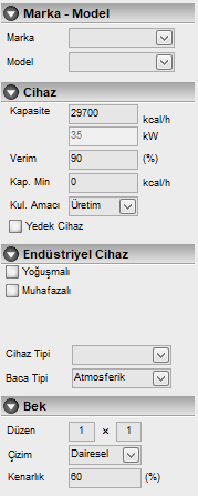 Cihaz Tipi : Endüstriyel cihazın tipi belirlenir. Konveksiyonlu fırın, Çay ocağı, Buhar kazanı, Kızgın yağ kazanı, Ram makinası, Baskı makinası vs. gibi