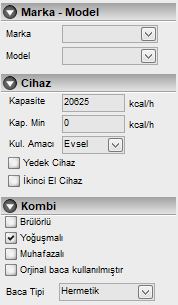Marka : Bu açılır kutudan kombi markasını seçiniz.