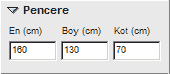 Kot : Pencerenin zeminden yüksekliğini cm cinsinden verebilirsiniz.