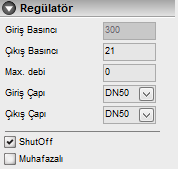 Çıkış Basıncı : Giriş basıncı regülatörün üzerinde olduğu hattın basıncıdır. Çıkış basıncını mbar cinsinden giriniz. Böylelikle regülatörün servis verdiği hatlarda bu basınç etkin olacaktır.