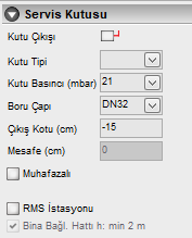 Kutu Basıncı : Kutu servis basıncını belirleyiniz. 21 mbar, 300 mbar. Bu alana 4000 mbar a kadar değeri manuel yazabilirsiniz.
