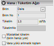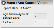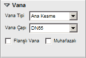 Vana Tipi : Bu açılır kutudan vana tipini belirleyebilirsiniz. Şu değerler mevcuttur. Ana Kesme , Tüketim (Ağız), Cihaz,Eminiyet, Yan Bina.