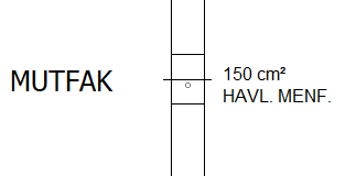 Bir mahale menfez eklemek için, mahal seçiliyken sağ tuş menüsünü açınız ve buradan odaya menfez aç seçeneğini seçiniz. Bir çok durumda menfez ihtiyacı doğduğunda, ZetaCad gerekli mahale kendisi otomatik olarak menfez açabilmektedir.