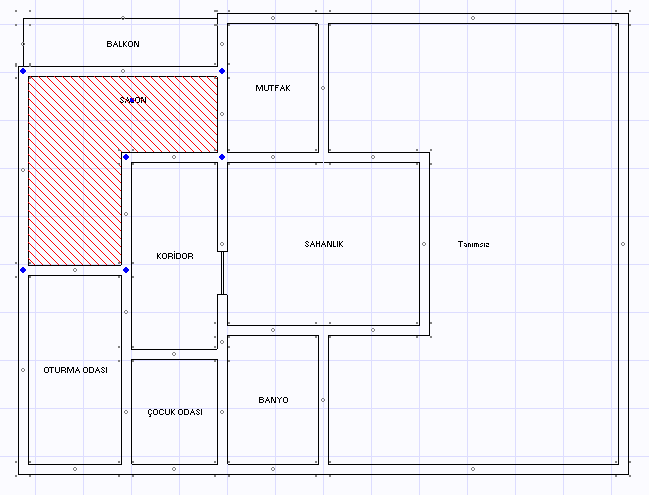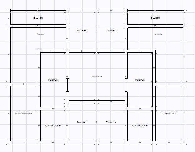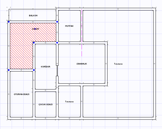 Ancak aynalama yapmadan önce, kaynak birim seçili olmalıdır. Tek birim içinde de aynalama yapılabilir ancak her halükarda aynalama kaynağını oluşturacak birimden bir mahalin seçili olması gerekmektedir. Aynalama butonuna bastıktan sonra ayna doğrultusunu belirlemek gerekir. Bunun için aynalamanın merkezinde iki noktaya tıklayınız. Şimdi seçili birimden ayna doğrultusunda mimari plan elemanları aynalanacaktır.