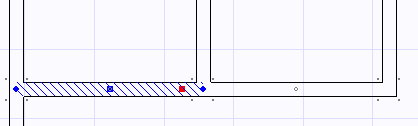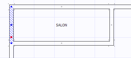 Köşe noktalarını sürükleyip bırakarak o köşeye bağlı duvarları konumlandırabilirsiniz veya orta mavi noktayı sürükleyip bırakarak seçili duvarı kendi doğrultusununun durumuna göre yatay veya dikey olarak hareket ettirebilirsiniz. Kırmızı modifikasyon noktası ise duvarı kendi doğrultusunda bulunan diğer duvarlarla (resimdeki örnekte sağdaki ikinci yatay duvar) beraber satıh taşıması yapmak için kullanılır.
